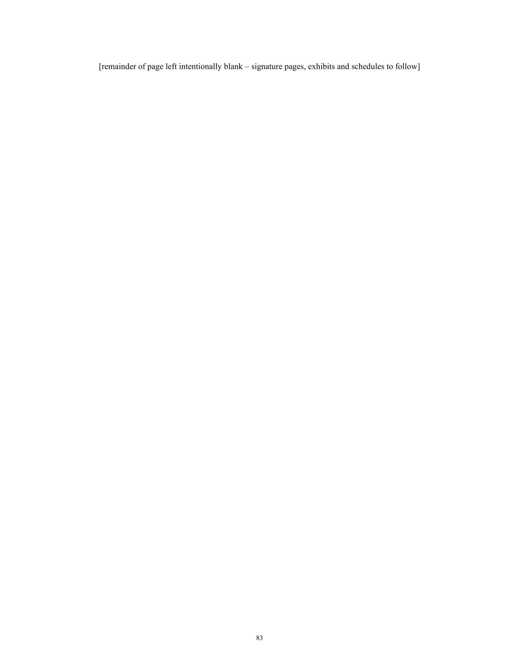 83 [remainder of page left intentionally blank – signature pages, exhibits and schedules to follow]