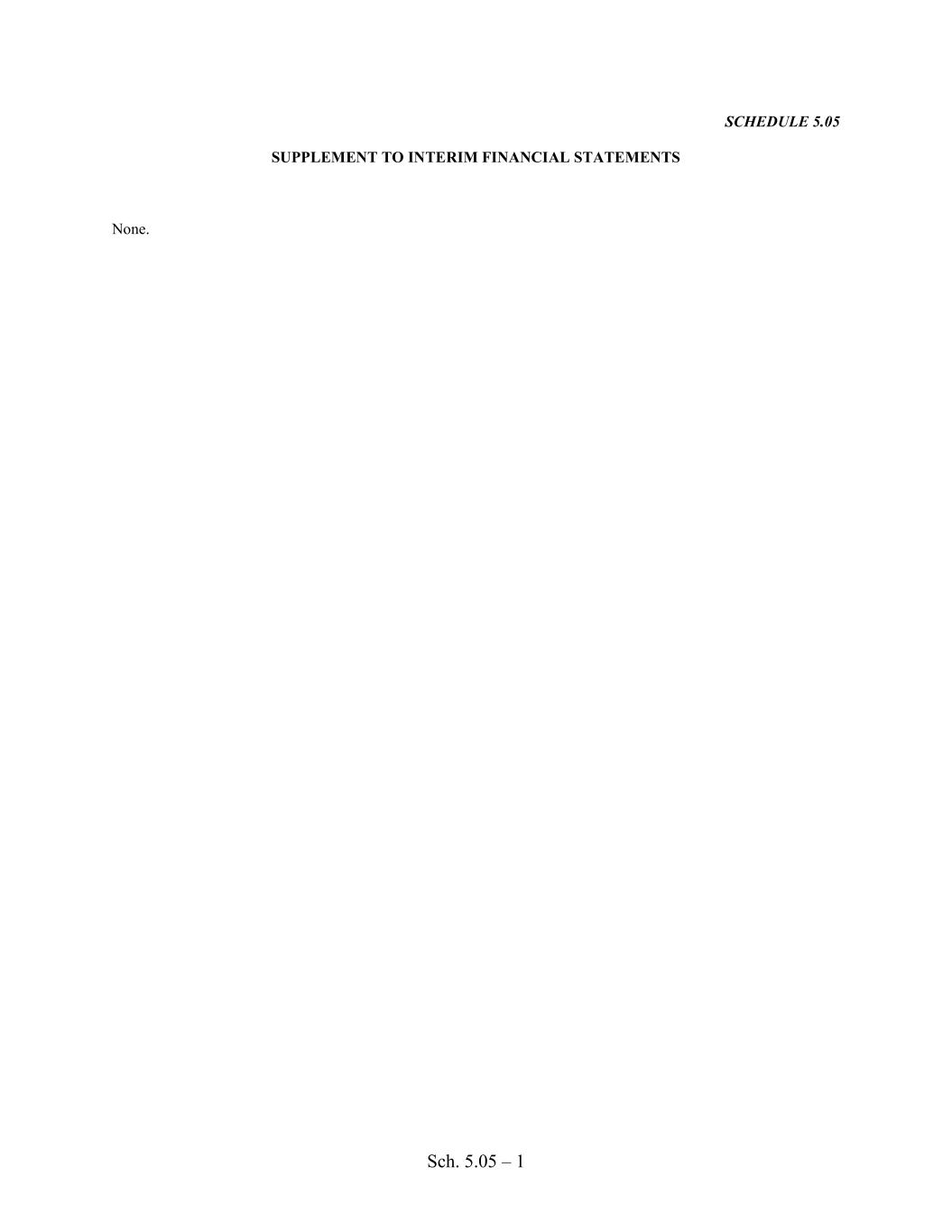 Sch. 5.05 – 1 SCHEDULE 5.05 SUPPLEMENT TO INTERIM FINANCIAL STATEMENTS None.