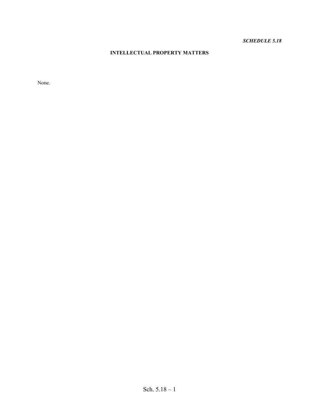 Sch. 5.18 – 1 SCHEDULE 5.18 INTELLECTUAL PROPERTY MATTERS None.