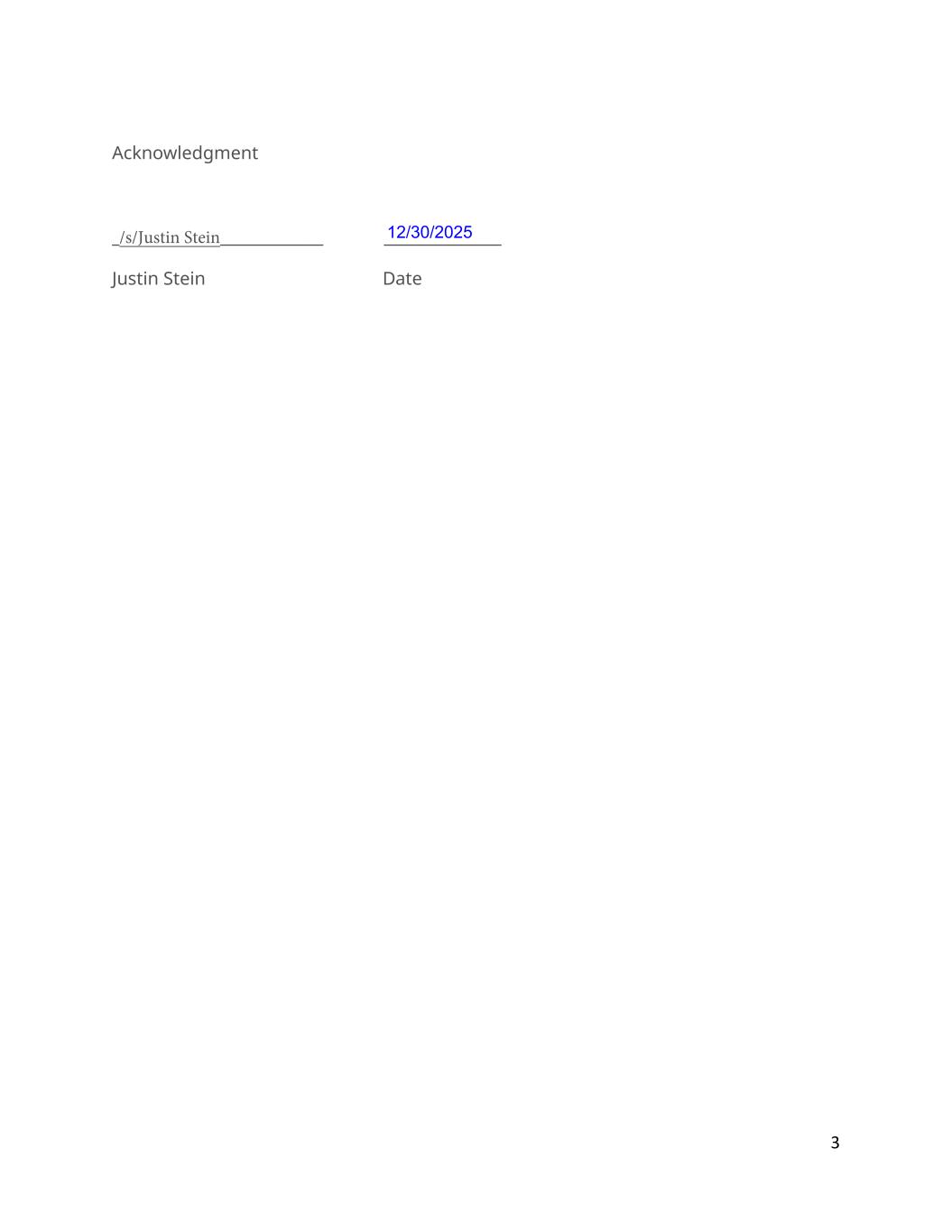 3 Acknowledgment _/s/Justin Stein______________ ________________ Justin Stein Date 12/30/2025